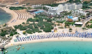 For those visitors wanting a quieter life than that provided in Ayia Napa, the small village and beach of Ayia Thekla provides a much more restful experience. Located some 5 kilometres west of Ayia Napa, Ayia Thekla is named after the ancient shrine of Saint Thekla, built into the coastal cliffs near the local beach. The village itself is basically very small and resembles a small linear villa development. The local beach however, is much more attractive with its naturally sheltered sandy beach and a small island about a hundred yards offshore making it an ideal spot for lounging or swimming the day away. Ayia Thekla beach is also very popular with the local Cypriots who tend to stay all day enjoying their barbecues, whilst their children swim and play in the shallow, calm waters.